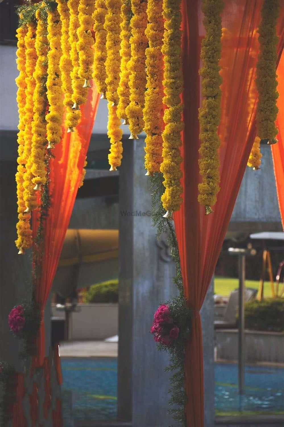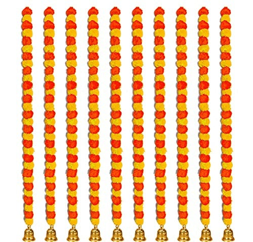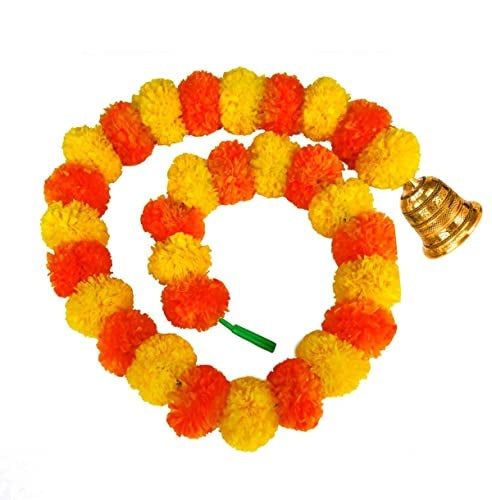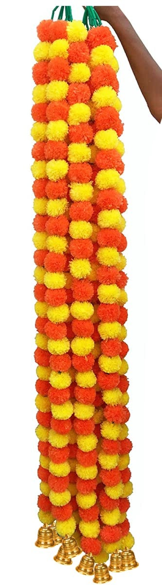 Included Components: Each Pack Contains 5 Strings of 5 Feet long Premium Looking Artificial Marigold Garland with 5 Premium Looking Bells