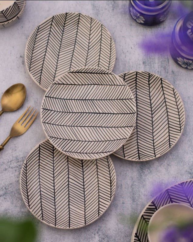 Astraea Ceramic Glossy Handcrafted Quarter Plates | Set Of 4