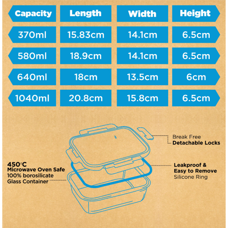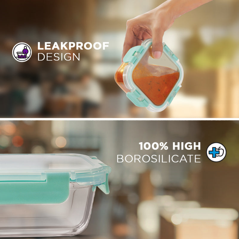 Avy FoodSafe Safe Glass Container with Break Free Detachable Lock | Set Of 4