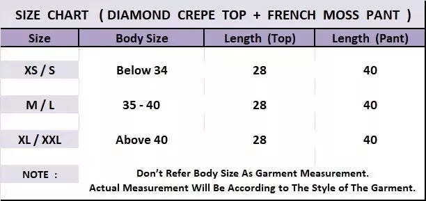 Co-ord Set Fabric :- High Quality Crepe Co-ord Sets