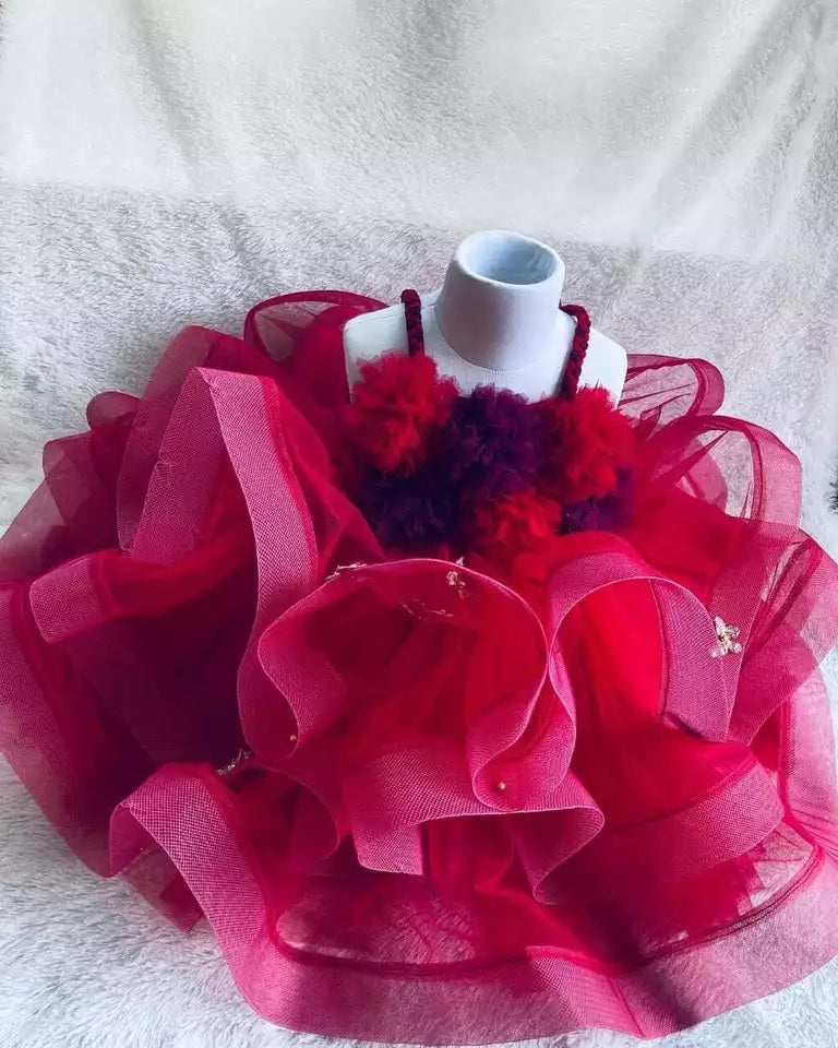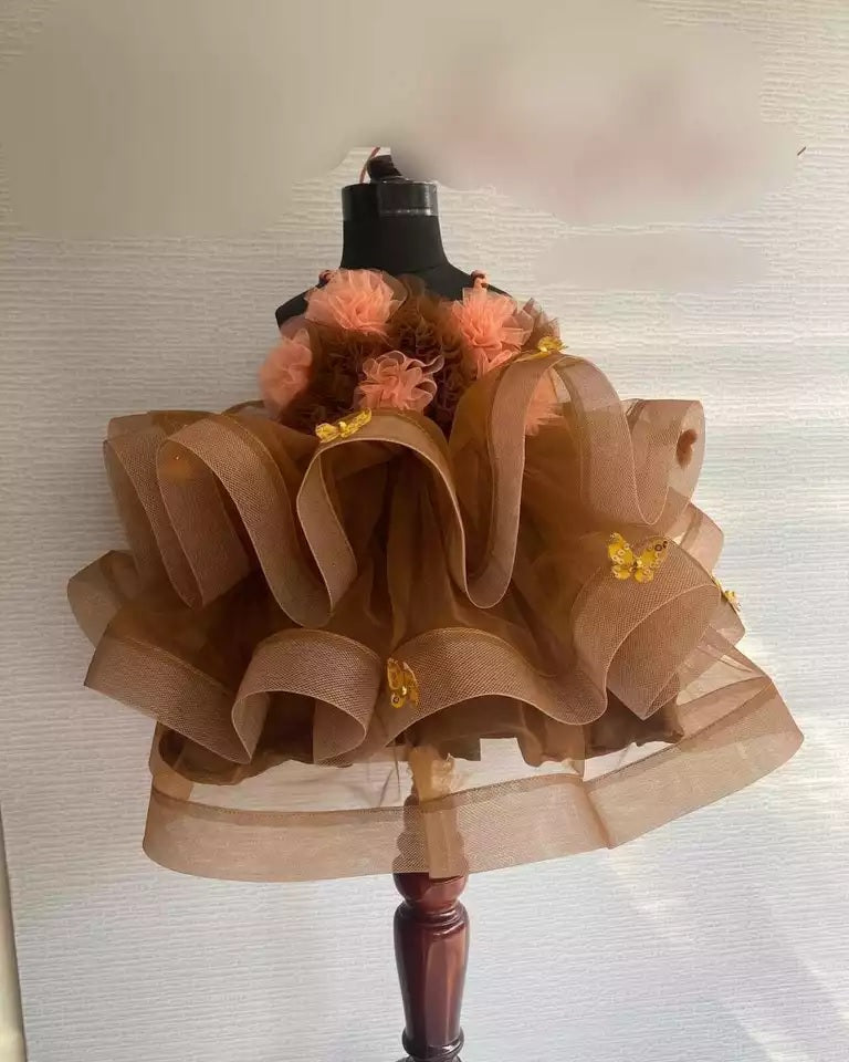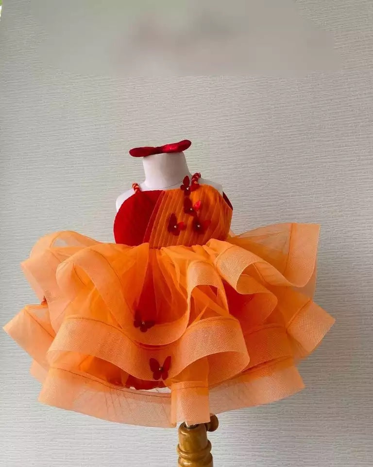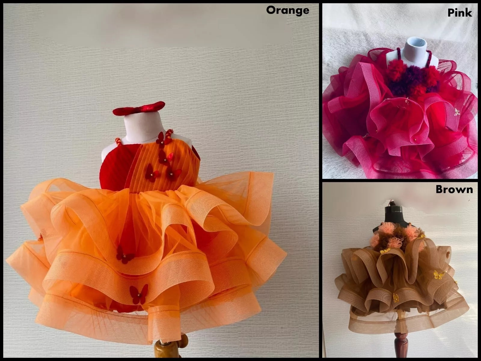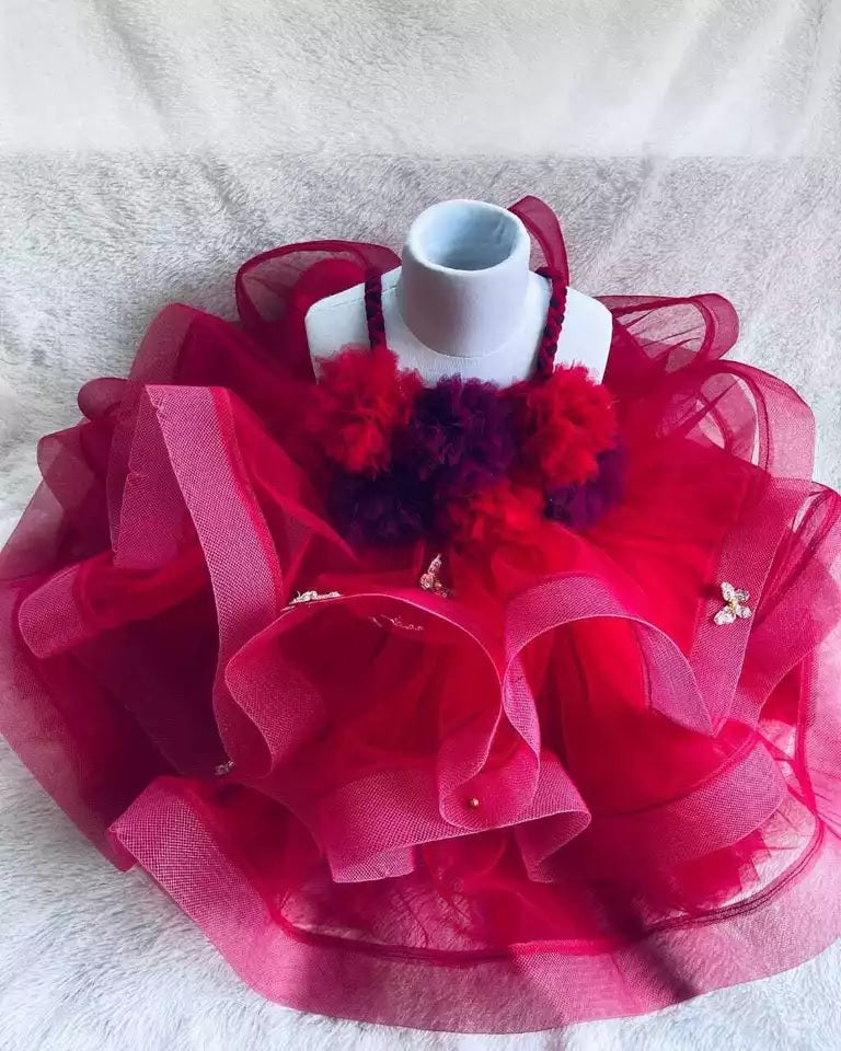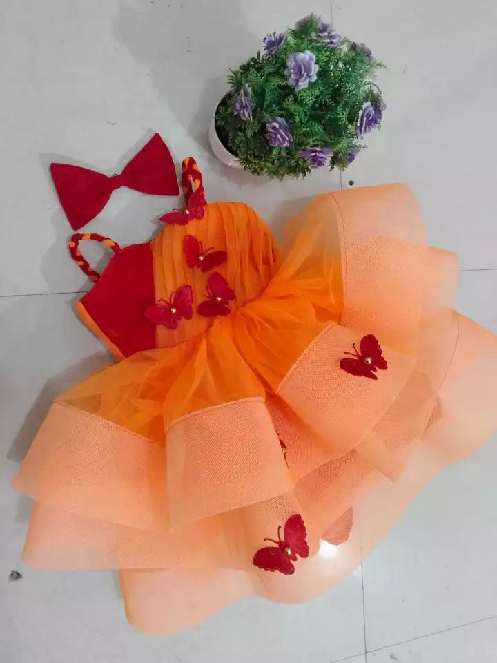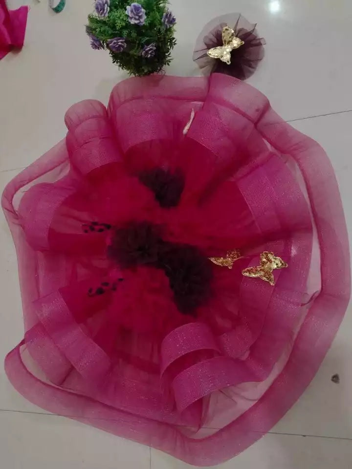 FANCY NET SILK BEADS WORK KID WEAR FROCK