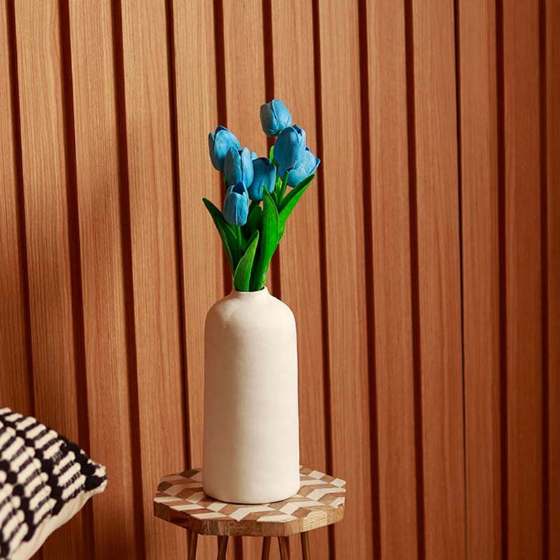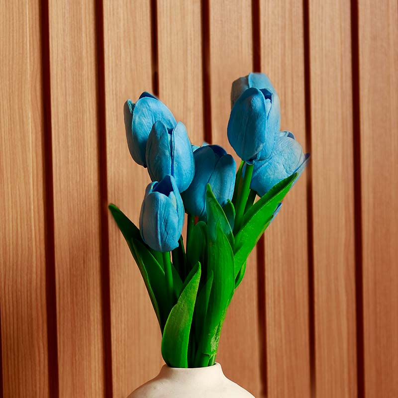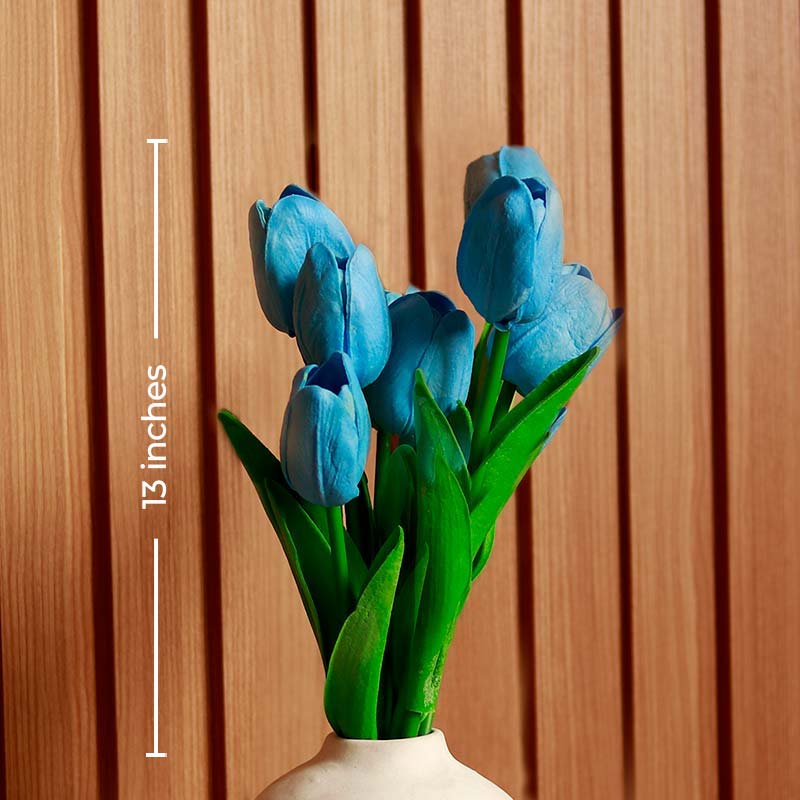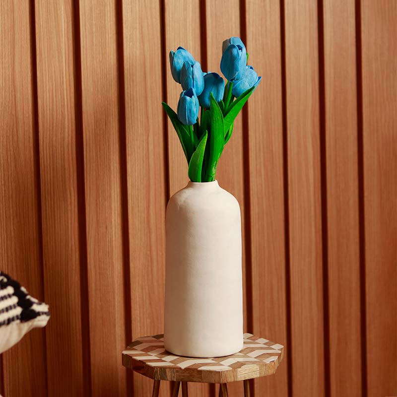Vase & Flower Combo | Blue Tulips in a White Ceramic Vase