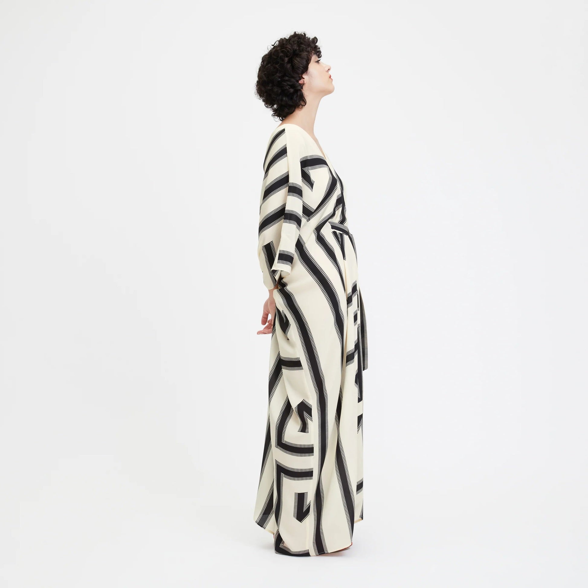 Black & White Digital Printed For Women's Long Kaftan With Belt