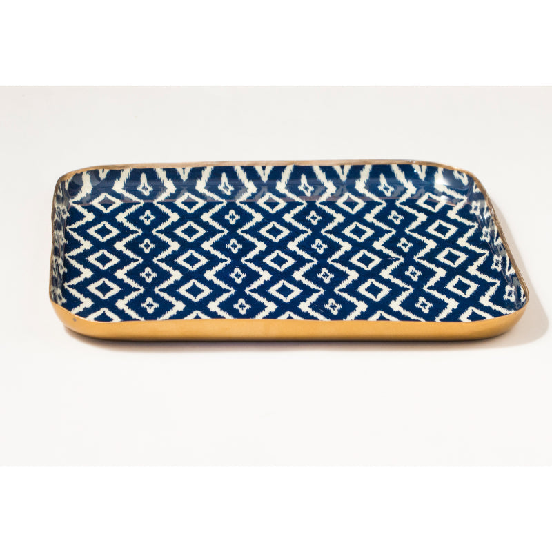 Blue Ikat Square Platter With Bowl