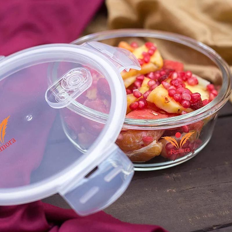 Delivering Goodness and Convenience Femora Borosilicate food containers are the perfect choice to store and cook food in the microwave. Pop the leftovers in the fridge without the need to transfer them to a container. Femora provide 1 year warrant against any thermal shock. Air and liquid Tight Container The air and liquid tight seal also promotes the retention of freshness of the food stored in them. This container can withstand heat up to 300 degrees Celsius which means that it is both microwave proof and oven proof and can store hot food without any problem. The air vent lid redefines the new age containers. There won’t be any tussle between you and your hot food inside the container to open. The air vent lid makes it easy to open the container. 1 Year Warranty Femora Borosilicate Products comes with high quality borosilicate glass to increase the life span of product. With one year warranty you can purchase and use the product without any fear. Care & Maintenance 1. Don’t use over direct flame. 2. Do not allow the food to dry completely in oven/microwave. 3. Do not put the hot dish on wet surface. 4. Do not use abrasive cleaners or scourers to ensure scratch free surface. |