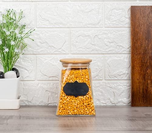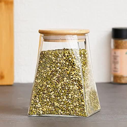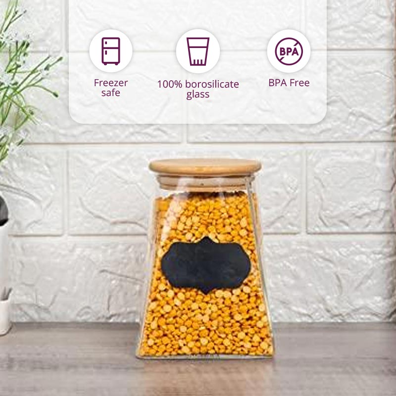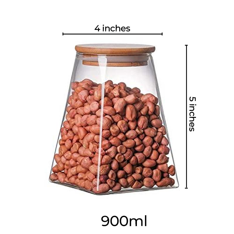Borosilicate Glass Triangle Storage Jar with Bamboo Lid | 900 ml