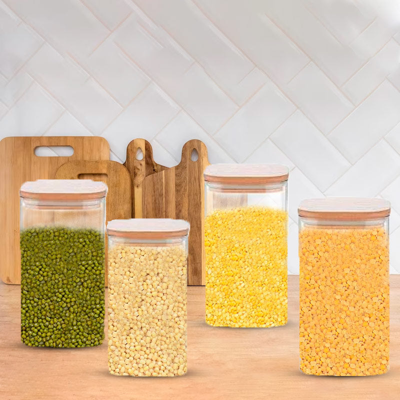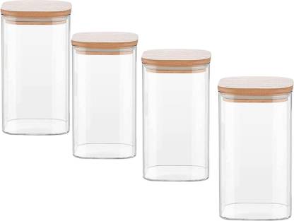 Glass Bamboo Lid Air Tight Jar | 700 ml | Set of 4