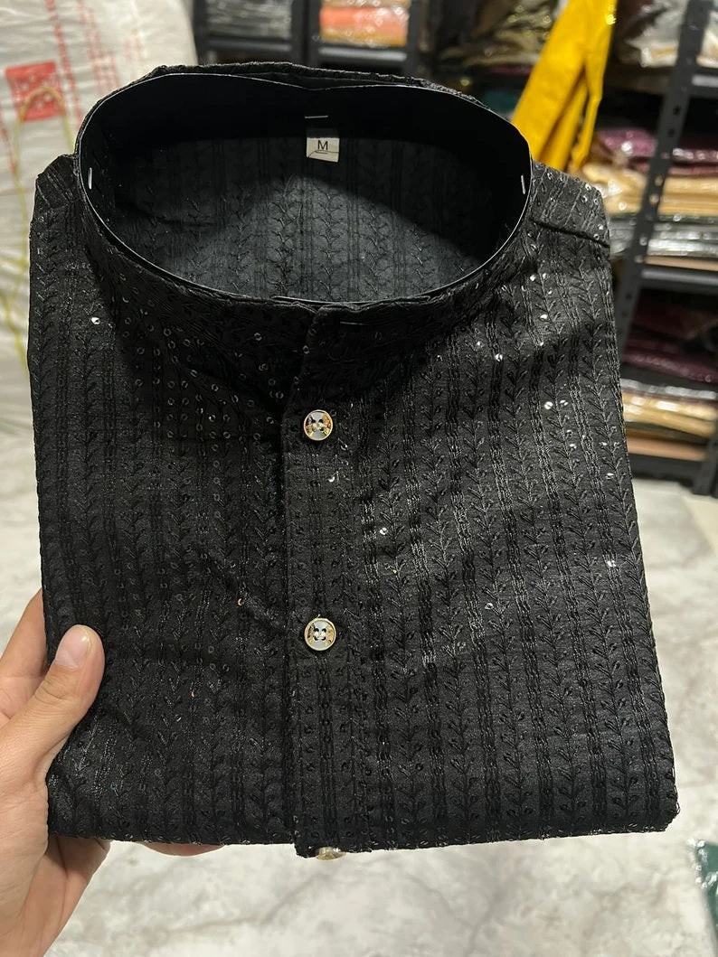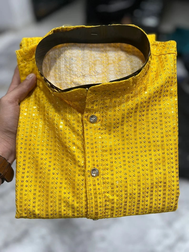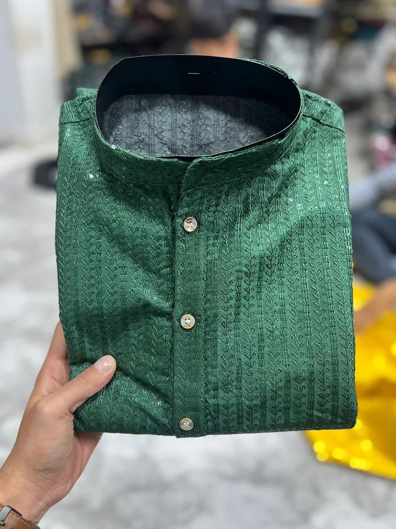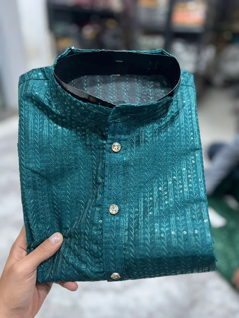 Heavy Banglori Silk With Embroidery Sequence Work Kurta Pajama Set