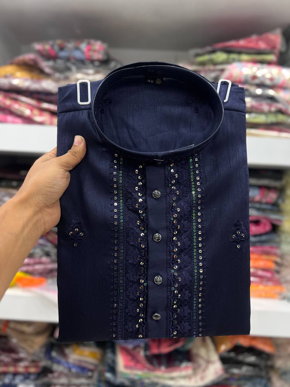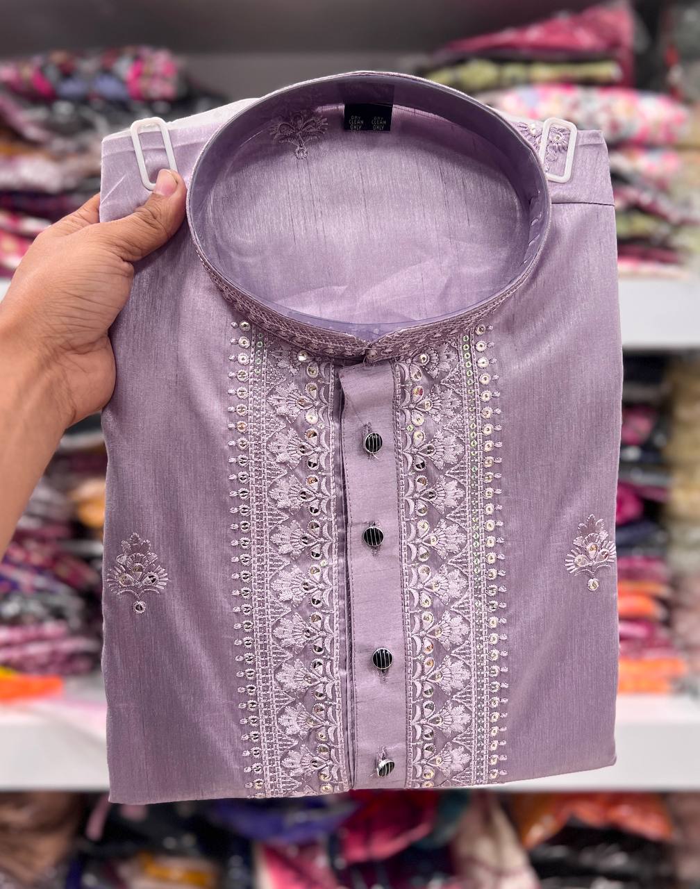 Heavy Super Silk With Embroidery Work Kurta Pajama Set