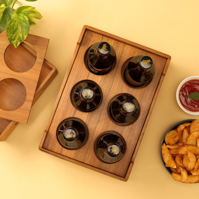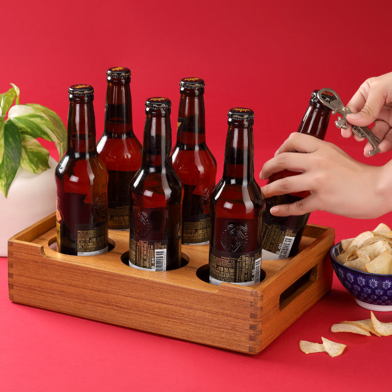 cardboard carriers. Good times and good beer go perfectly together with this premium teak wood caddy; with its streamlined silhouette, this bottle tote goes with any decor.